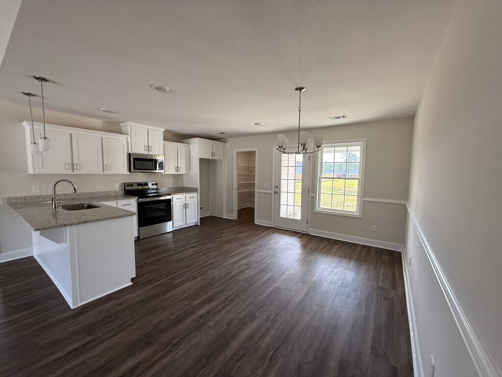 Brand new 4 bed / 2 bath home Desirable River Bluff Community with highly rated Bulloch county schools Open Kitchen and Living room floor plan with an overhang island All new stainless steel appliances Large walk-in pantry LVP throughout main living areas Master suite with large walk-in closet Covered front and back patio Sealed floor, two car garage Quiet, family-friendly neighborhood Conveniently located 10 minutes from Hyundai Metaplant and I-16, 20 minutes to Pooler, 40 minutes to Savannah Video walkthrough available by request