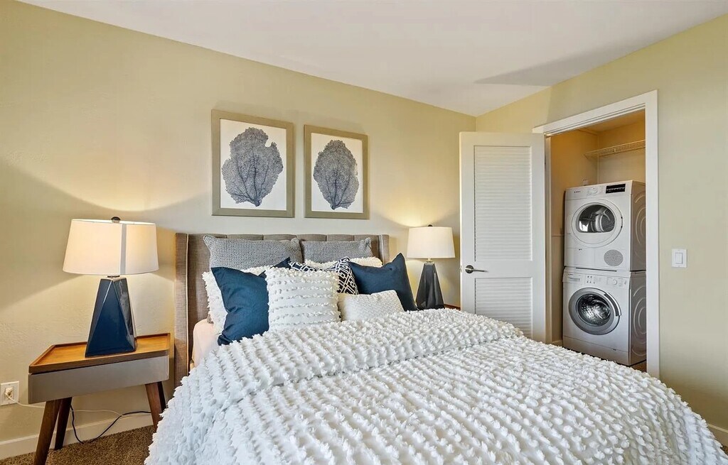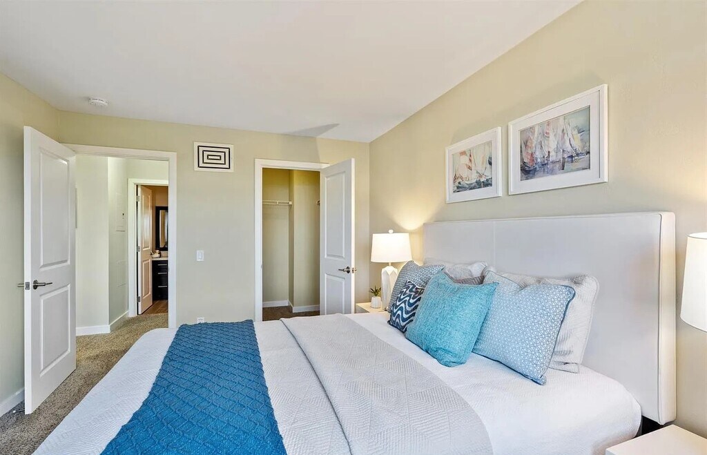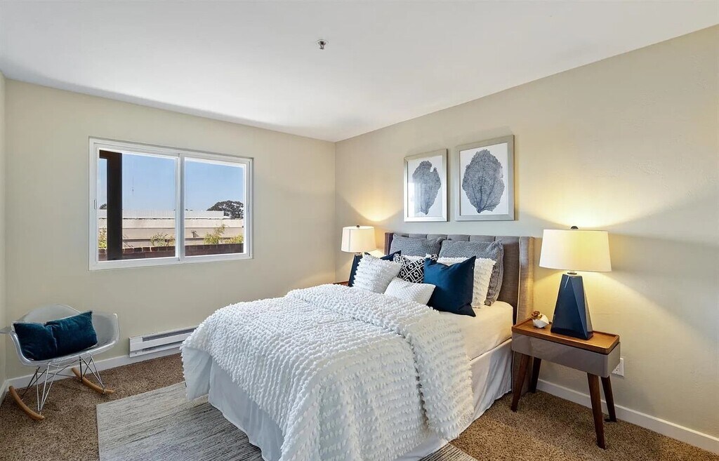 Available NOW, this unfurnished 2 bedroom, 2 bathroom condo offers an unparalleled living experience with courtyard views, a pool, gym and 1 parking spots in the desirable Bridgewater community. As you enter, you’ll be delighted by the open and spacious flow of the functional floor plan featuring one bedroom and one bathroom on each side of the living spaces providing the ultimate privacy. The updated kitchen has stainless appliances, stone countertops, crisp white cabinetry and a breakfast bar. The large light-filled living room opens to a private balcony with filtered Bay views - a perfect spot for morning coffee and evening drinks! There are two good sized bedrooms with primary bedroom with en-suite bath and walk-in closet. The second bedroom is conveniently located next to the second bathroom and also provides ample storage in the walk-in closet. There is in-unit washer and dryer and one deeded parking garage space. As an added bonus, the condo building offers a gym, pool, sauna and spa. Other community amenities include a clubhouse and green space w/bbq area to host events as well as electric vehicle charging. With top-tier security measures in place to help handle visitors and package deliveries, this condo provides the ultimate urban living experience. Located 2 blocks away from the Emeryville Public Market, minutes to the Berkeley Marina and easy access to major freeways, BART, and F/J bus lines to San Francisco, this residence combines modern sophistication with the convenience of urban living. _____ Spacious and functional floor plan: Fully renovated - Freshly New Paint - Heat - Electric - Stainless steel appliances: Dishwasher, microwave, oven/range and Brand New refrigerator - Granite counter with breakfast bar - Full bathroom with shower-over-tub - In unit washer/dryer. Two Walk-in closets: Extra windows bringing natural lighting into the units - Double panes windows - Extra storage in patio area - Balcony overseeing beautiful courtyard - 1 designated parking space with plenty of guest parking Amenities: - Security and concierge - Off hours camera monitoring - Controlled access (multi-layered security) - Gated and secured access to covered parking garage - Package service (Security desk accepts packages, to be picked up later at a convenient time) - Business center/Conference room (24/7 access and free wifi) - Fully furnished Clubhouse (can be reserved for private use once every 6 months at no charge) - Pool and spa - Gym - Yoga Room - Massage Room - Sauna Room - Landscaped courtyard and BBQ area - Elevator - EV charging stations for Electric car – Location: - Easy access to Freeways and the Bay Bridge - Across the street from Causal Carpool and transbay bus for easy commute to the City and free Emery Go Round stop to Bart - 5 min walk to the hip Emery Bay Public Market with lots of food choices - Mins from Bay Street Shopping Center, movie theater, grocery stores, restaurants, cafes and banks