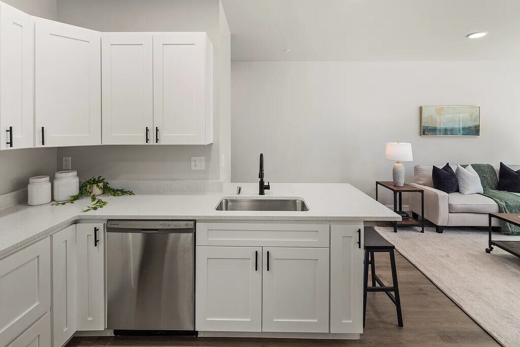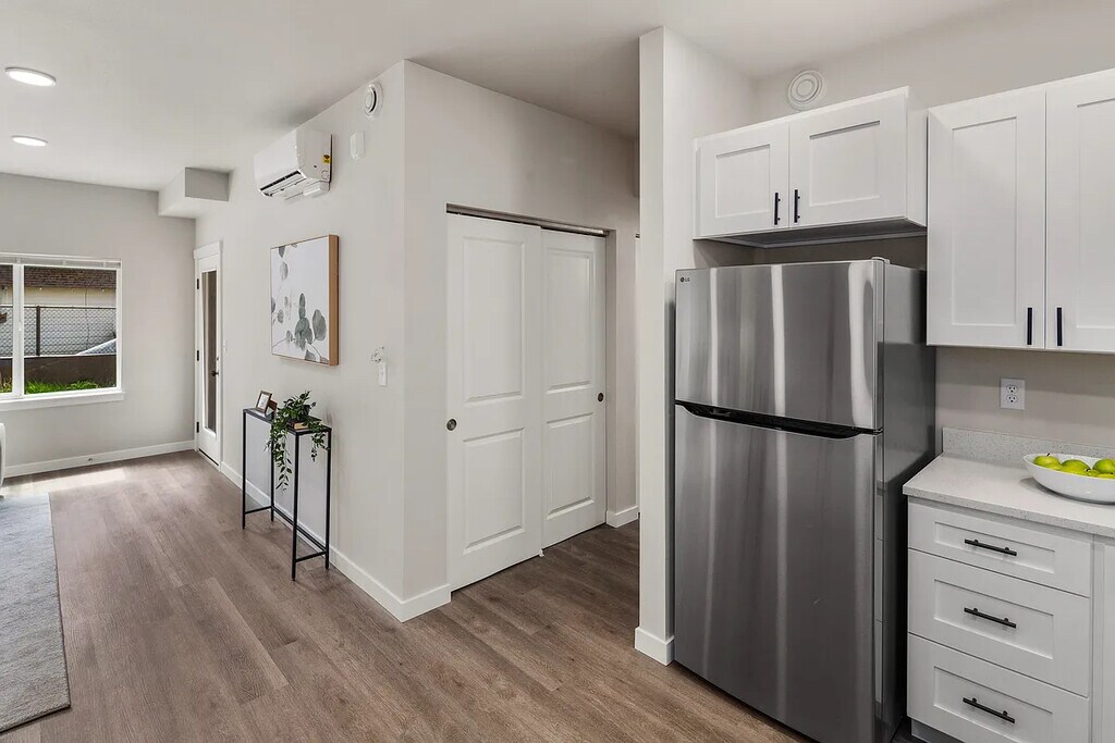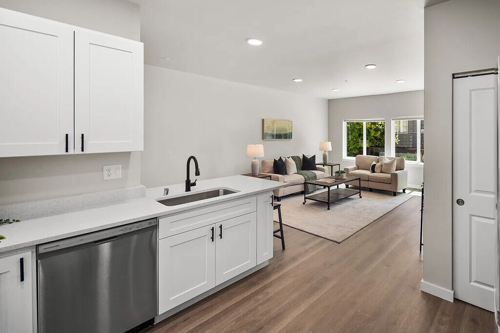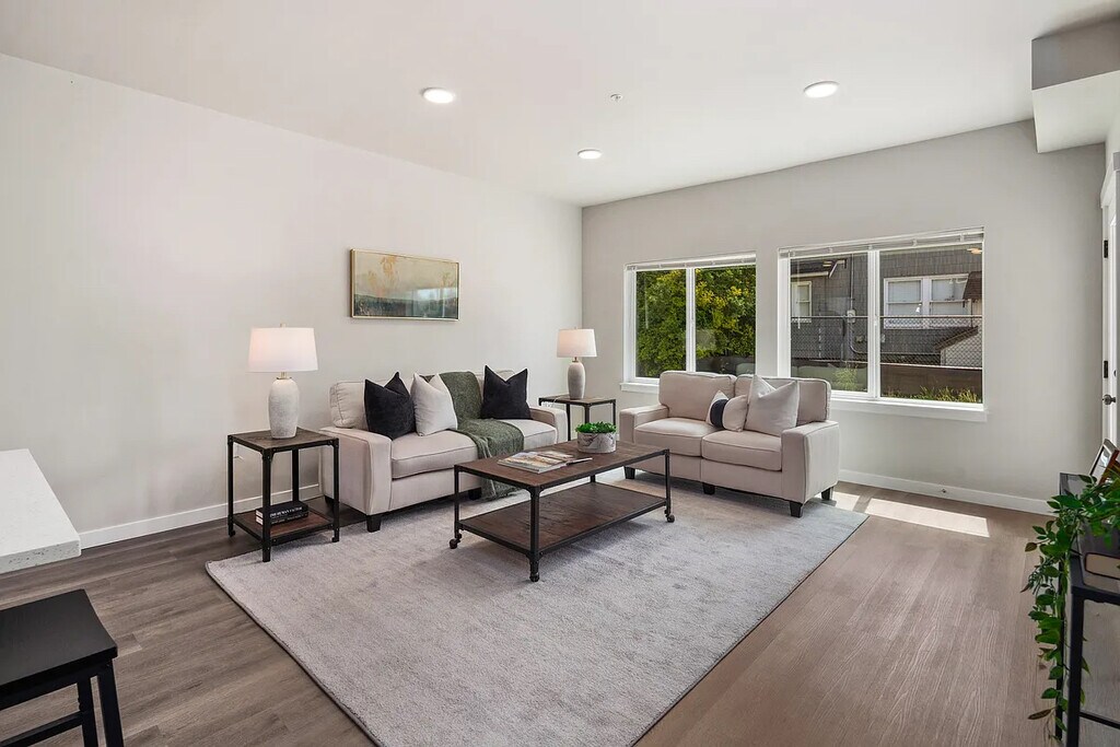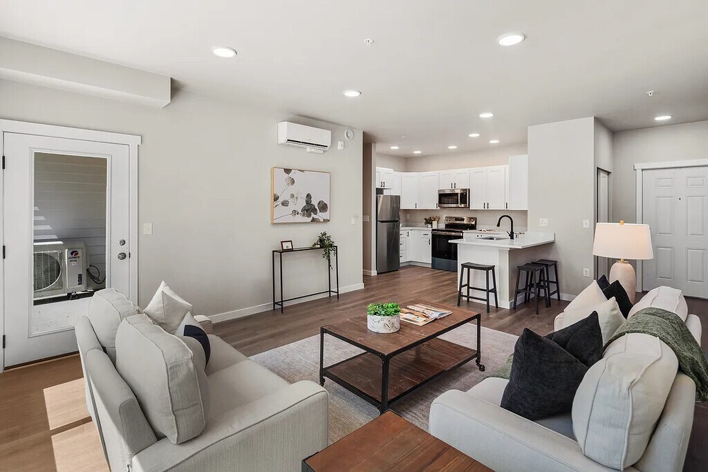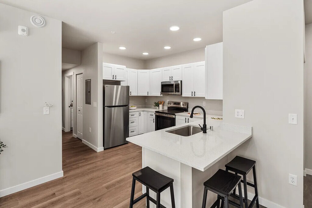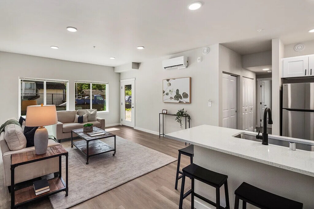 Welcome to your dream apartment in Tacoma! This brand-new 2-bedroom, 2-bathroom residence offers 1,100 square feet of modern living space, designed for comfort and style. Step inside to find an open-concept layout that seamlessly connects the spacious living area to a contemporary kitchen, featuring sleek stainless steel appliances, elegant countertops, and ample cabinetry. Natural light floods the space through large windows, creating a warm and inviting atmosphere. The master bedroom boasts an en-suite bathroom, complete with modern fixtures and a spacious shower, while the second bedroom is perfect for guests or a home office. Additional highlights include in-unit laundry, hardwood floors, and high ceilings that enhance the sense of space. Located in a vibrant Tacoma neighborhood, you'll enjoy easy access to local shops, dining, parks, and public transport. Experience urban living at its finest schedule a tour today and make this stunning apartment your new home! The two-story complex is conveniently located near local shopping centers, grocery stores, community parks, museums, Pacific Lutheran University and restaurants, all with quick and easy access to I-5 and SR 512.