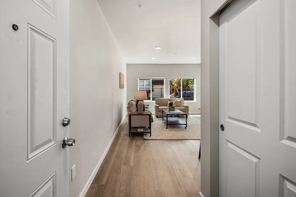 Welcome to your dream apartment in Tacoma! This brand-new 2-bedroom, 2-bathroom residence offers 1,100 square feet of modern living space, designed for comfort and style. Step inside to find an open-concept layout that seamlessly connects the spacious living area to a contemporary kitchen, featuring sleek stainless steel appliances, elegant countertops, and ample cabinetry. Natural light floods the space through large windows, creating a warm and inviting atmosphere. The master bedroom boasts an en-suite bathroom, complete with modern fixtures and a spacious shower, while the second bedroom is perfect for guests or a home office. Additional highlights include in-unit laundry, hardwood floors, and high ceilings that enhance the sense of space. Located in a vibrant Tacoma neighborhood, you'll enjoy easy access to local shops, dining, parks, and public transport. Experience urban living at its finest schedule a tour today and make this stunning apartment your new home! The two-story complex is conveniently located near local shopping centers, grocery stores, community parks, museums, Pacific Luthran University and restaurants, all with quick and easy access to I-5 and SR 512.