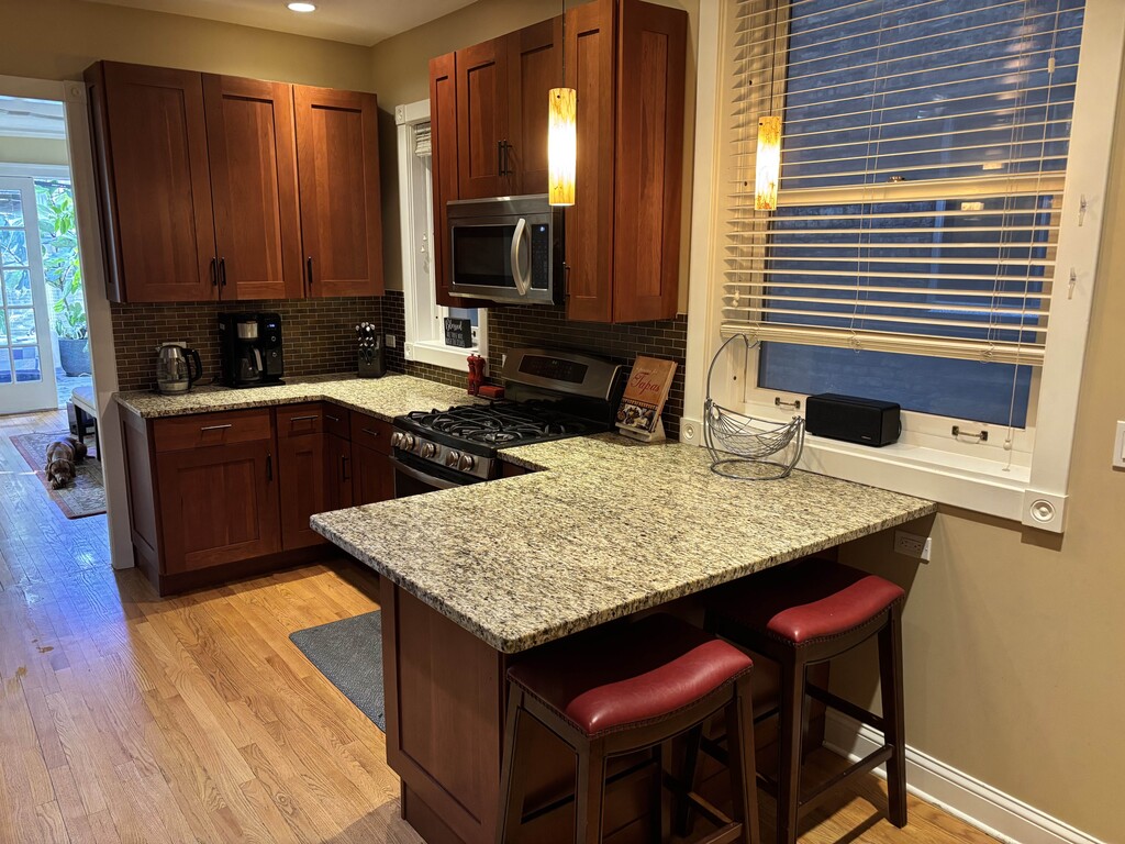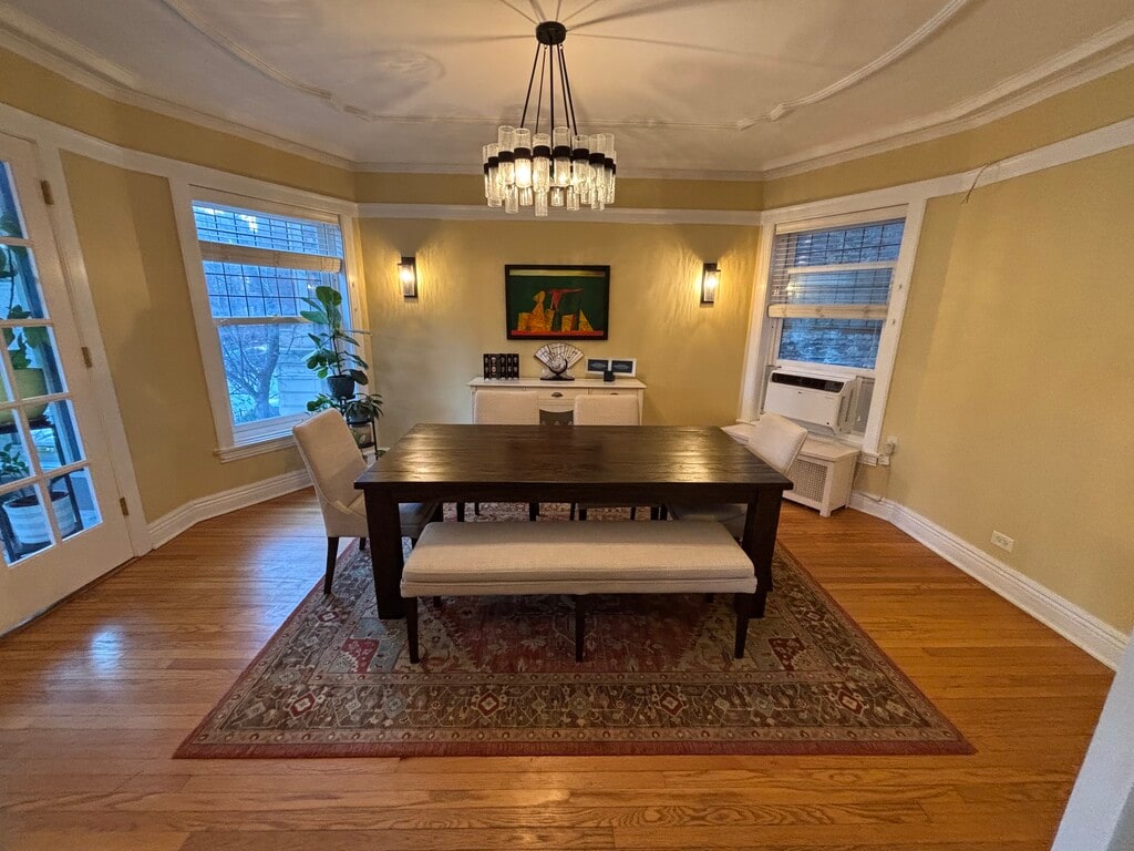 Stunning, recently fully rehabbed wood-burning fireplace in the living room is marveled at by visitors. Sunroom up front is a wonderful place to enjoy your morning, or any part of the day, year-round. It also makes a light-filled home office. In-unit washer and dryer. Modern kitchen with granite counter tops and plenty of storage space in hardwood cabinets. Back patio opens to views of LSD and the park. With no row of housing behind, the patio gets a perfect combination of morning and afternoon sunshine while still being protected from intense mid-day sun. A fantastic bonus for those who like to BBQ among their colorful annuals. It is definitely cooler near the lake. Heat is included. The few window units are NOT needed daily during the summer. Three large washers and dryers are also available in the basement. Each unit has tons of closet space. Additional storage space (approximately 4 x 10) in basement. Beautiful front yard. Bittersweet Place is a quiet street most people don’t even know exists. A literal stone’s throw away from the boundary of Lakeview, walking to the lakefront with another human, or dog takes mere minutes. Multiple grocery stores are within walking distance. Transportation up and down the lakefront, by car or public transport, is a breeze. All the restaurants and stores of Lakeview are minutes away. Clark Street and Andersonville are not much further. The unit is spacious and welcoming. The neighborhood is great. Couldn’t ask for better upstairs neighbors. Parking is available across the street for 200 dollars per month. The street is zoned 24/7. As long as you don’t drive off at 6 p.m. thinking you will come back to the spot you left, you don’t really need it. Broadway, overnight, is an easy back-up option. If you’re a fan of great sports bars, Michael’s is within walking distance.