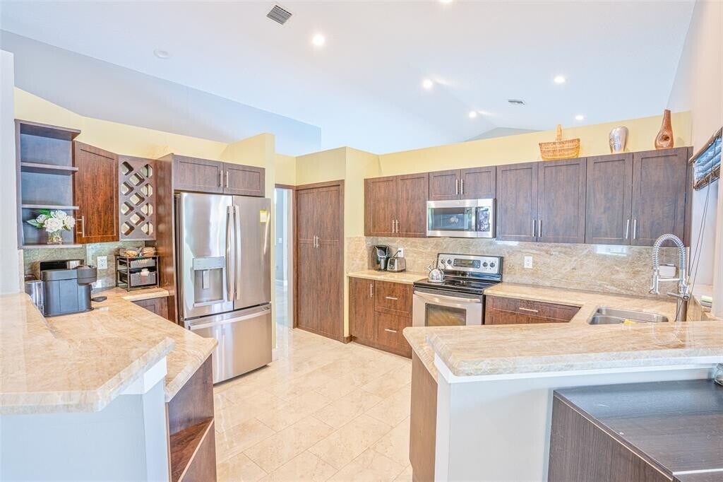 COME SEE THIS GORGEOUS pool HOME!!! This prestigious house features a LARGE open floor plan showcasing 3BDR's & 2 1/2 BTHR's with an office and formal dining room. Tile floors throughout. Kitchen features brand new SS appliances & quartz countertops. All bathrooms have been recently updated. MSTR bath is pure spa bliss w/ new vanities, double sink, glass enclosed shower & roman/spa tub. Resort style pool features screen enclosure & mesh pool fence. This home also has hurricane Impact windows & accordion shutters. HIGH-SPEED internet & wi-fi included in the rent!!!! 2-car garage, installed storage, circular driveway, lush landscaping, near shops, great schools and more! This home is a MUST SEE!!!!!