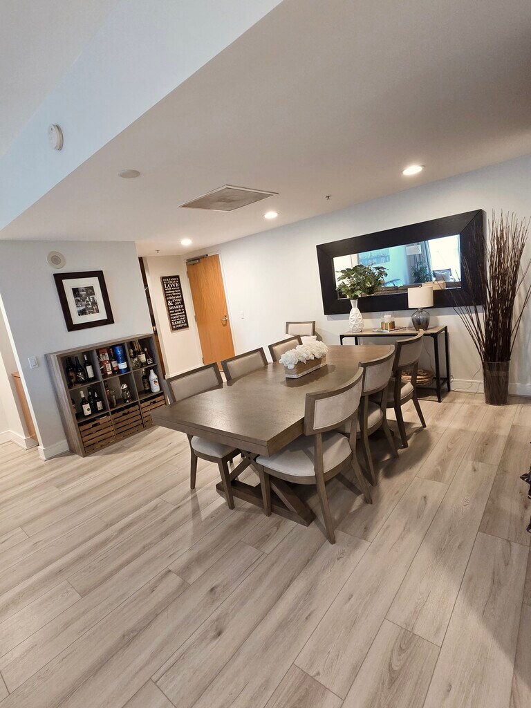Large and Beautiful 2 bedroom/2 baths condo located on the 5th floor in the upscale Renaissance building in the amazing Marina District location. Walk to Gaslamp Quarter, Seaport Village, Headquarters, Convention Center, Embarcadero, Post Office, Banks, Library, Trolley, Restaurants, Children’s Museum, Dry cleaners, Tanning Salon to name a few. 24/7 Ralph's Supermarket is across the street from our condo. Condo is bright and has great views of the building’s beautiful plaza. Enjoy breakfast from the balcony located right off of the master bedroom. Bathrooms are spa-like with beautiful marble and porcelain floors and marble countertops. Master bedroom has an en-suite bathroom with double vanities, walk-in shower and separate soaking tub, his and hers custom closets and extra built-in closet custom made by California Closets. Second bedroom is very large and comes with a large custom made closet by California Closets and it has a built-in office. Kitchen has stainless steel appliances: double-door Sub-Zero refrigerator, 5-burner gas cooktop stove, dishwasher, oven and microwave, LVP kitchen floors, granite countertops, large pantry and plenty of cabinet space. Unit has top-of-the line LVP hardwood floors throughout, Central Air conditioning and Heating system and Full size Washer and Dryer. The unit comes with a large storage located in the garage and 2 assigned parking spaces. Building amenities include: 24/7 security/concierge, pool, jacuzzi, 2 large barbecues, seating areas with firepit, an outdoor fireplace, well-equipped gym, spacious, modern community room and business conference/meeting room. Fiber optic internet cable. Locked bike storage. - Utilities included in the rent are: internet, water, hot water, gas, trash and sewer. - Minimum 1 year lease - $50 non-refundable application fee anyone living in the unit over the age of 18 - No pets - Non-smoking unit and building Tenants to pay building move-in/ move-out fee.
