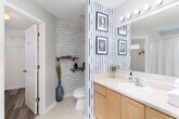 Length of Lease is negotiable! The house comes with 2 bedrooms with a king-size bed and a queen-size bed, 2 full bathrooms, fully-equipped kitchen, dining area, living room with 65" TV, a fenced-in yard and washer/dryer. The primary bedroom has a connecting bathroom with a big soaking tub and a massive walk-in closet. The entire house is fully furnished and decorated. There is an option for another bed (a foldable twin-size bed with mattress and bedding) if notified in advance. The house is located on a quiet sound-side cul-de-sac, yet in a central location with grocery stores, restaurants, drug stores, etc. A community pier on the sound is in the walking distance right in the development. The shared area comes with picnic tables, chairs, grill and a fire pit. The neighborhood also comes with 2 parks for the kiddos.