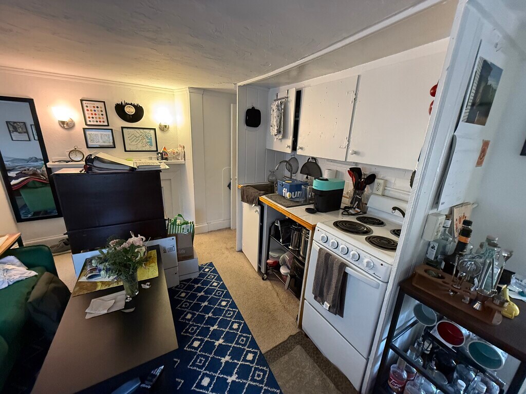 Studio / 1 bath located on Anderson Street for 9/1 move in date -carpet -standard bathroom -White Kitchen Cabinets -Carpet -Flooring -cats allowed