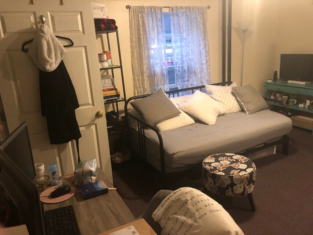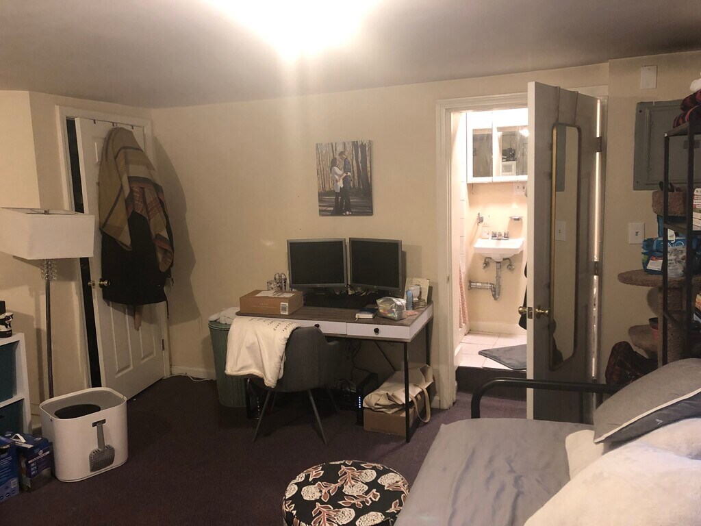 Studio / 1 bath located on Anderson Street for 9/1 move in date -carpet -standard bathroom -White Kitchen Cabinets -Carpet -Flooring -cats allowed