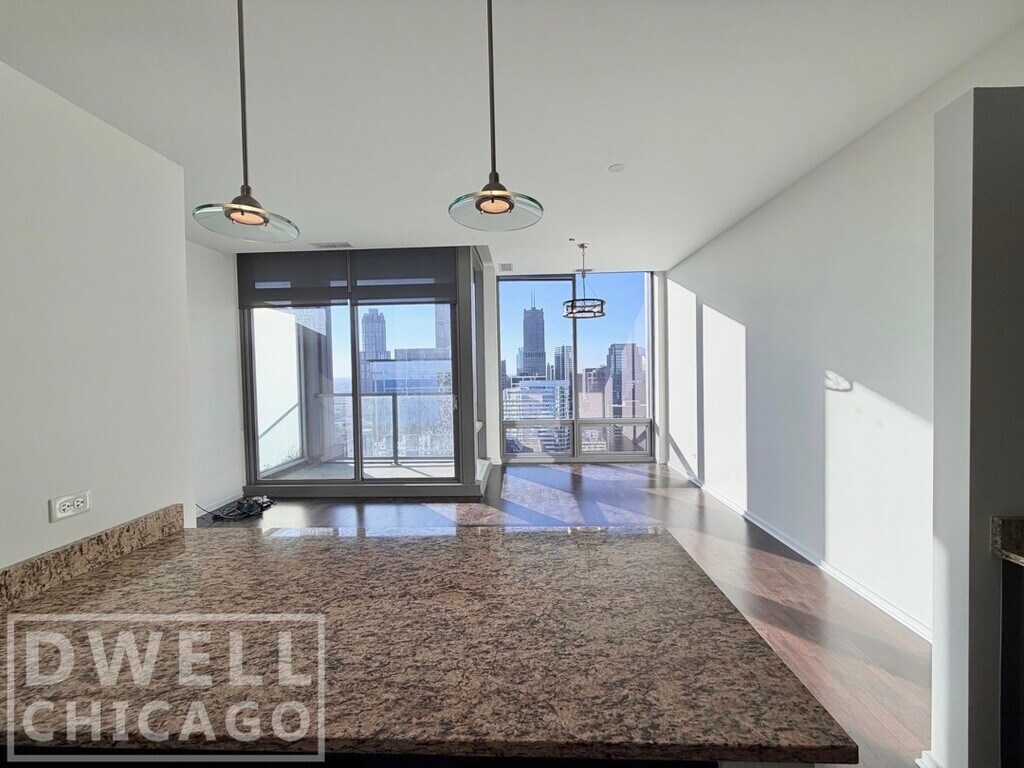 LOOP 1BR CONDO AVAILABLE NOW - Privately Owned Unit - Convenient Loop Location - Stunning West Views from the 46th Floor - Floor-to-Ceiling Windows - Private Outdoor Balcony - Hardwood Floors, Carpet In Bedroom - Stainless Steel Appliances - Dishwasher and Microwave - Granite Countertops - Laundry Room with Side-by-Side Laundry - King Size Bedroom - Tons of Closet Space - Central Heat and AC - All Utilities Included Except Electric - Parking Options Nearby - Sorry No Pets - Building Features a Doorman, Indoor Pool, Outdoor Hot Tub, Sundeck, and Fitness Center