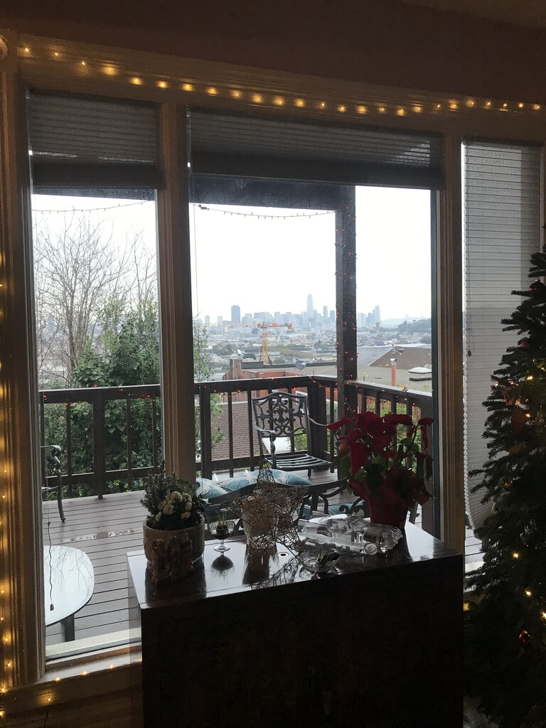 This three bedroom apartment is over 1250 sq ft With a large deck that has a wonderful view of San Francisco The building is a beautiful two apartment Victorian situated on top of Montezuma street in Bernal Heights neighborhood Close to all public transportation & 5 minute access to 101/280 orOakland bay bridge 20 minutes to SFO airport Quiet safe & clean