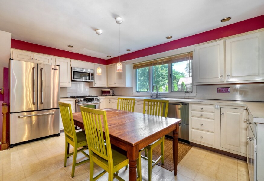 Well maintained Split Level Colonial with large rooms, beautifully Landscaped yard, patio area and pool. This home is a combination of formal and family living spaces. The 1st floor offers a formal living room with a fireplace that opens to a large dining room adjacent to a den with lots of windows and a skylight. The large eat-in kitchen has plenty of cabinetry and Jenair appliances overlooking the back yard. The 2nd and 3rd floors have five large bedrooms--a beautiful Primary suite, a full hallway bathroom. This home also has a finished lower level--great/exercise/play room with fireplace. The side entre mud-room and 1/2 bathroom with access to the Beautiful rear yard Pool and patio area for entertaining as well as a 2-car attached garage. Walking distance to the High school and a great commuter location.