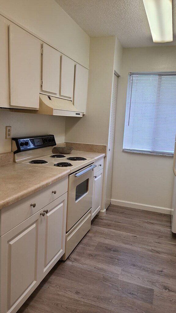 Remodeled and furnished, ground floor apartment with screened patio, tile floor, new kitchen and bathroom cabinets, open kitchen with a dining space with table separate from living room area. TV, L-shape sofa, equipped closet and bedroom. Nice location next to Oaks Mall, short ride to UF Campus and Santa Fe, close to all hospitals. Community offers large green areas to relax, pool, gym and grills.