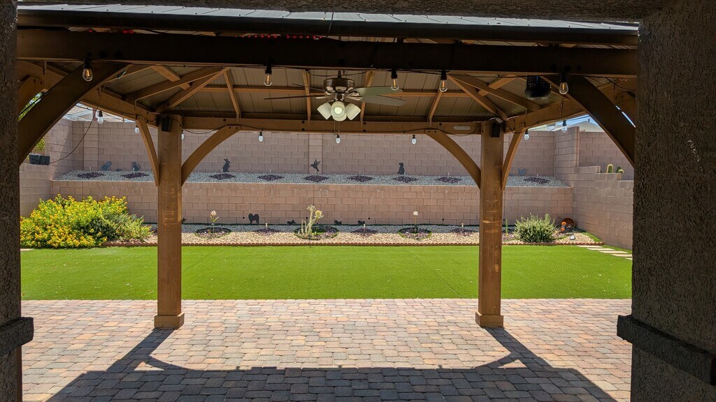A charming and well-maintained single story home located in a quiet gated Henderson community. This property offers comfort, convenience, and a variety of upgrades to make everyday living enjoyable. Large kitchen, lots of cabinets, countertop stove, microwave, double oven, large island, upgraded lighting Water softener and reverse osmosis filtration system Spacious backyard with shed, gazebo, LED lighting, sound system, misters, and ceiling fan All-tile flooring throughout easy to clean and stylish Upgraded garage Modern touches and thoughtful upgrades throughout the home