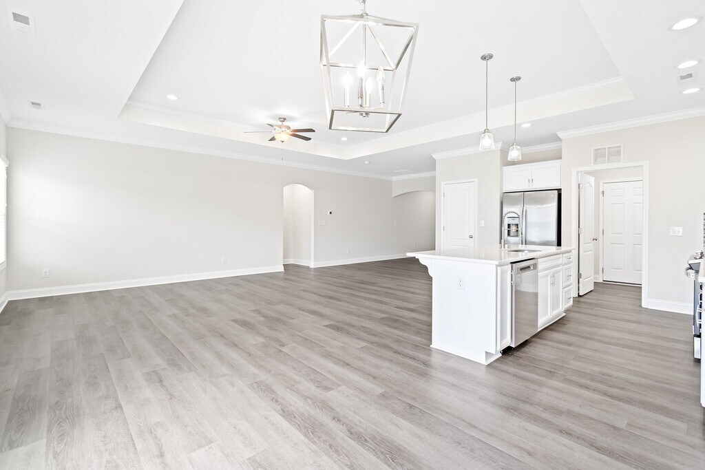 Built in 2022! Like New townhome in Whitsett, NC! 3 Bedrooms, 2 Baths townhouse with a Great Room with Tray Ceiling & Ceiling Fan that Opens to Dining and Kitchen area. Kitchen has quartz countertops with under cabinet lighting; island with pendant lights; stainless steel appliances included (gas range & vented microwave). This community offers a community clubhouse, resort size pool, fitness center, tennis court. Come check this place out!