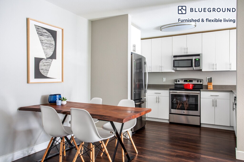 Feel at home wherever you choose to live with Blueground. You’ll love this cozy Sunnyvale furnished one bedroom apartment with its modern decor, fully equipped kitchen, and bright living room. Ideally located, you’re close to all the best that Sunnyvale has to offer! (ID #SFO368) The advertised rate of $3,930/month is the lowest available price, based on a 12 month(s) stay with a move-in date of December 12, 2025. Rates vary depending on the duration of stay, season, and other parameters. For exact pricing and additional pricing components, please visit our website and enter your desired move-in and move-out dates. The rate is applicable when billed upfront; it can be higher if billed in multiple payments. Brokers are welcome to reach out. Were you looking for an unfurnished lease? Try Blueground instead and upgrade from unfurnished to furnished living: - Furnished at rates comparable to unfurnished - No setup or furniture costs - save thousands - Move-in ready - save time, just bring your suitcase Designed with you in mind Gorgeous furniture, fully equipped kitchen, smart TV, and a premium wireless speaker are just a few of the amenities you’ll find inside this one bedroom apartment. Ideally located in Sunnyvale, you’ll find a lot to love outside as well. When you’re ready to relax, you’ll be happy to discover every Blueground bedroom comes with superior quality mattresses, luxury linens, and cozy towels. We handle everything so you can simply show up and start living. This apartment also offers in-apartment laundry. Sleeping arrangements King Bed, 70.8in/180cm Amenities Building amenities unique to this one bedroom apartment include an on-site: - BBQ Area - Dryer - Elevator - Swimming pool - Washing machine - Lounge - Parking - Pets allowed Arrival and ongoing support The entire apartment is yours to enjoy! Throughout your stay, you’ll have access to our Client Experience team through the Blueground App. You can schedule additional cleanings, submit maintenance requests, and view our neighborhood recommendations with just a few taps. We’ll share all details upon confirmation of your stay. Ideally Located This furnished home is in the heart of the South Bay's Sunnyvale, with headquarters to many tech companies. Situated to the north of Santa Clara and to the south of Mountain View, Sunnyvale is a mid-sized city with nearly 150,000 residents. The median age is 35 years old, with a male to female ratio of 50/50. Sunnyvale is best known for its downtown on Murphy Avenue, which still retains its small-town feel. There are two golf courses at the Sunnyvale Golf Course, including an 18-hole championship course. Other things to note Building amenities may have an extra cost. This Blueground apartment has flexible lease options, allowing you to book it for one month, a year, or more. Pets are welcome, though weight limits and breed restrictions apply and may incur fees. Parking is offered based on availability and is subject to a fee. We take great pride in ensuring every photo displayed is shot in our own units with our actual furnishings. That said, we regularly refresh our decor and furniture arrangement, which may differ from what’s pictured. [SI]
