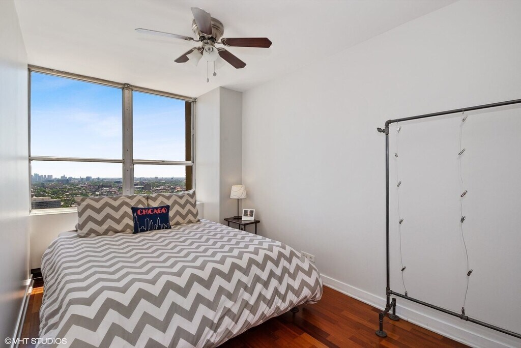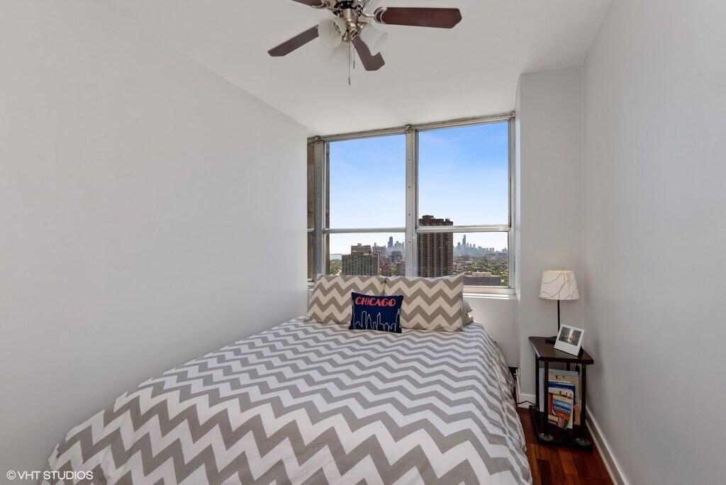 Views for days of the downtown Skyline in this spacious junior one bed at Park Place Tower. Recently renovated, this unit features hardwood floors throughout, stainless-steel appliances, granite counters, a breakfast bar and plenty of storage with a nice size walk-in closet. This building offers TONS of amenities including a 24-hour door staff, a sun deck with an olympic size pool, grills, large fitness center, laundry room, convenience store, theater and dry cleaning. Parking is available for lease from the building. Steps from the lakefront path, the building is a block away from CTA buses and a short walk to the Red Line.