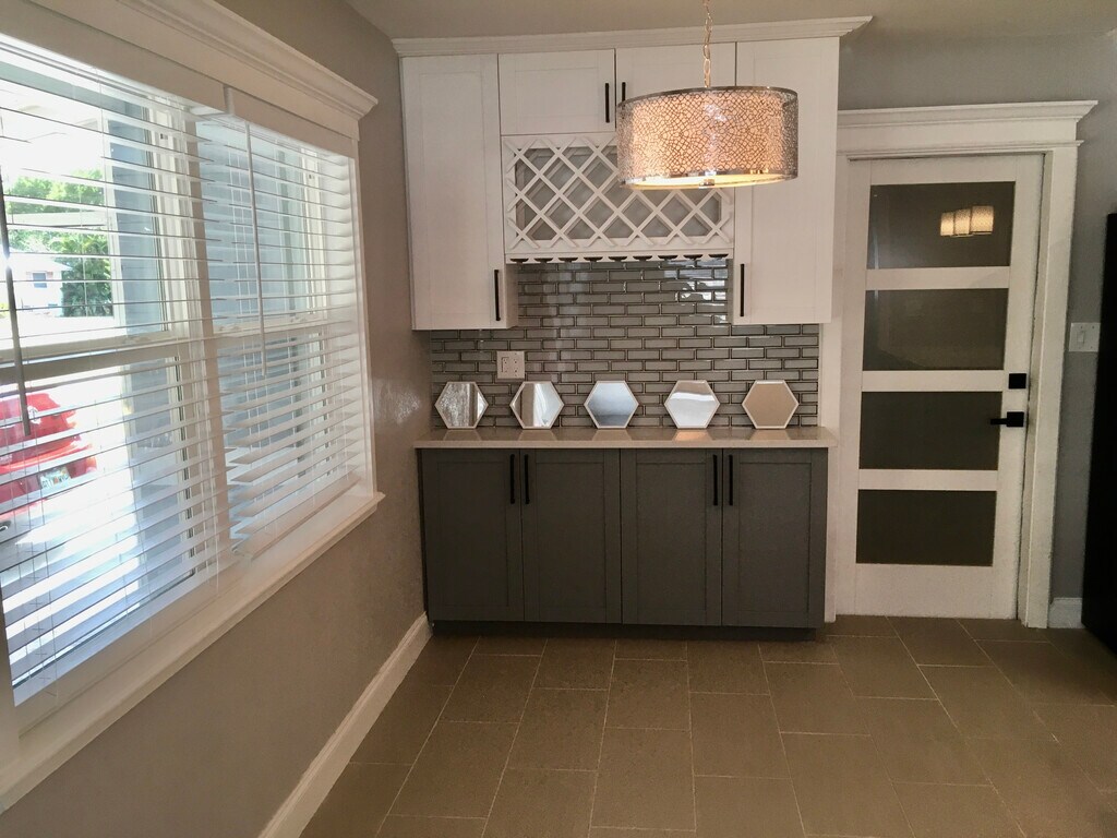 Everything in this house is new and sparkling. COVID-sanitized. Brand new slate stainless steel Samsung refrigerator, range, and microwave. Brand new LG washer and dryer in the large garage. Freshly painted inside and out. Screened front and back porches with decorative tile. New tiled floors throughout the home, detailed trim work around all doors and windows. The kitchen has 42" upper cabinets with two-tone gray and white Shaker cabinets, crown molding, quartz counter tops, huge sink. Beautiful glass subway tile back splash. Counter island accommodates Three bedrooms, each with its own large mirrored closet and bracket for large-screen tv. They share a spectacular modern bathroom tiled from floor to ceiling, with rain shower head and back lit mirror. It is handicap accessible with extra wide door and roll-in/walk-in shower. The home has all new impact glass windows for added safety and insurance discounts. The large back yard has a new 6' vinyl fence, pergola and fire pit. This house backs up to Forrest Bluff Park with your own private entrance! You have no rear neighbors besides singing birds and lush green space. Don't miss your opportunity as this home will go fast!