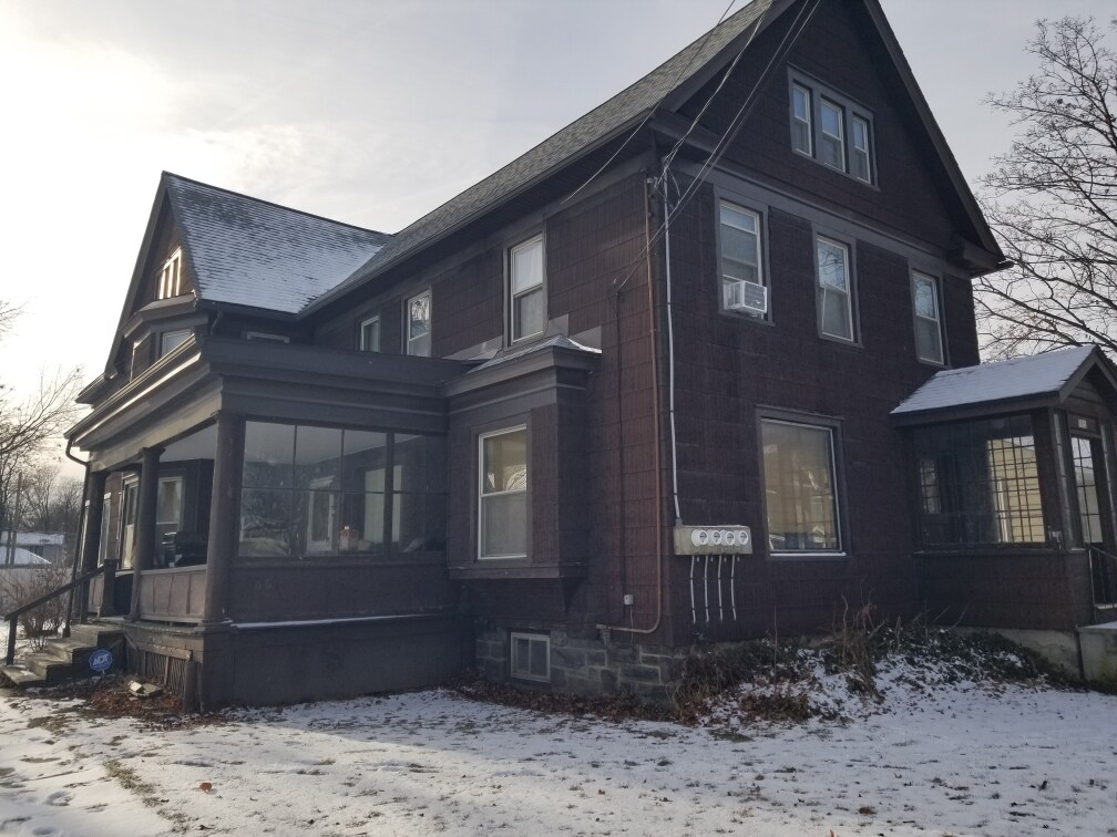Great amount of space in this 1st floor apartment. Most pets are welcomed. The price is reflective of the not-so-perfect floors. All kitchen appliances remain, washer and dryer hook ups available inside your unit. Additional Storage space in basement and plenty of off street parking in rear of the building. Separate entry, and a large covered porch is for your use only. Pets are Negotiable. View by appointment only, do not disturb current occupants. 12 and 18 month lease option available. No smoking indoors. Grass maintenance and Snow Removal is 1st floor tenants responsibility, $150/m fee applies if non-compliant. Plenty of parking available in rear of building. Storage available in the basement. 1 bedroom, 1 bathroom and additional 3 rooms to use as you wish. 1,300 sq ft of the entire 1st floor. Could use an extra rug or two, so price is reflective of that. Location is excellent.