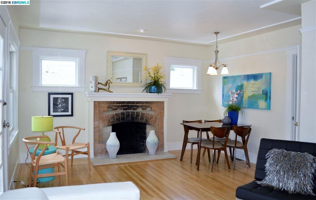 Walk score 92! 1 block from Piedmont Ave (coffee shops, restaurants, grocery) 5 min walk to Rose Garden 20 min walk to Lake Merritt, Rockridge, Uptown, Temescal 5 min walk to Kaiser Oakland, 10 min bike to Benioff Children's Hospital Oakland or 10 min drive to Highland Hospital 2 blocks to I-580, 5 min walk to Transbay bus stop, 20 min walk to MacArthur BART Large living room w/ working fireplace, hardwood floors throughout Full bath w/ shower over tub & skylight Eat-in kitchen w/ stainless steel appliances, large gas stove, in-unit washer & dryer Lovely deck w/ city/hills views, access from kitchen Larger bedroom has bay window, deck access, large closet, bonus room for office, nursery or yoga space Includes internet, trash, water, sewer, 1 off-street parking spot No smoking, vaping, drugs; pets negotiable Rental insurance required Unfurnished There is a downstairs studio w/ separate entrance. A side deck & stone-tiled backyard w/ fruit trees are shared.