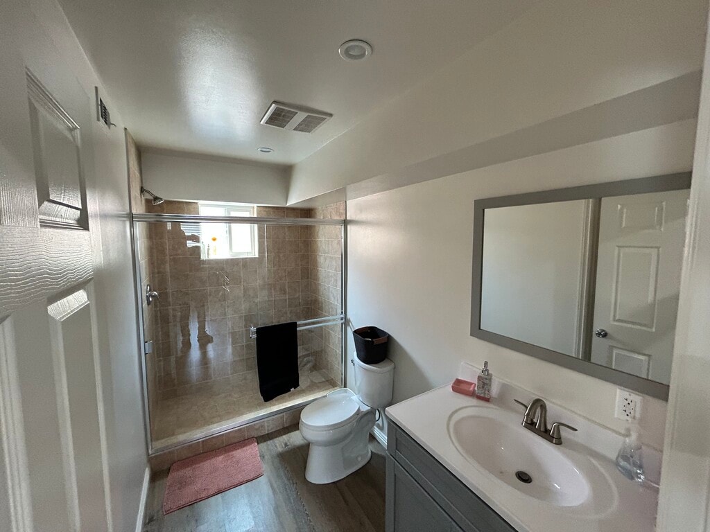 New Two story with 3 Master suites Build 2021 , house with central AC/Heat. Laminated vinyl Flooring though out house , one bedroom one bath and living room and kitchen in first floor and two bedrooms and 2 baths on 2nd floor and new stainless appliances , Quartz counter top, recessed lighting through out house , Double penal windows, Gated property air conditioning w/d hookups Gated off-street 2 parking wheelchair accessible