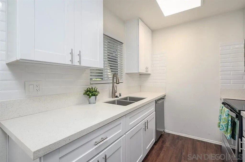 Located in Rolando Village near El Cajon Blvd's array of shops and restaurants, this entry-level two-bedroom, half-bathroom home has been freshly updated and is move-in ready! Property features include a newly remodeled kitchen outfitted with new stainless steel kitchen appliances, new shaker cabinetry, subway tile backsplash, quartz counters, a master bedroom, and new bathroom vanity. Additional features include a freshly painted interior, laminate flooring, and new windows throughout. This apartment is not furnished!
