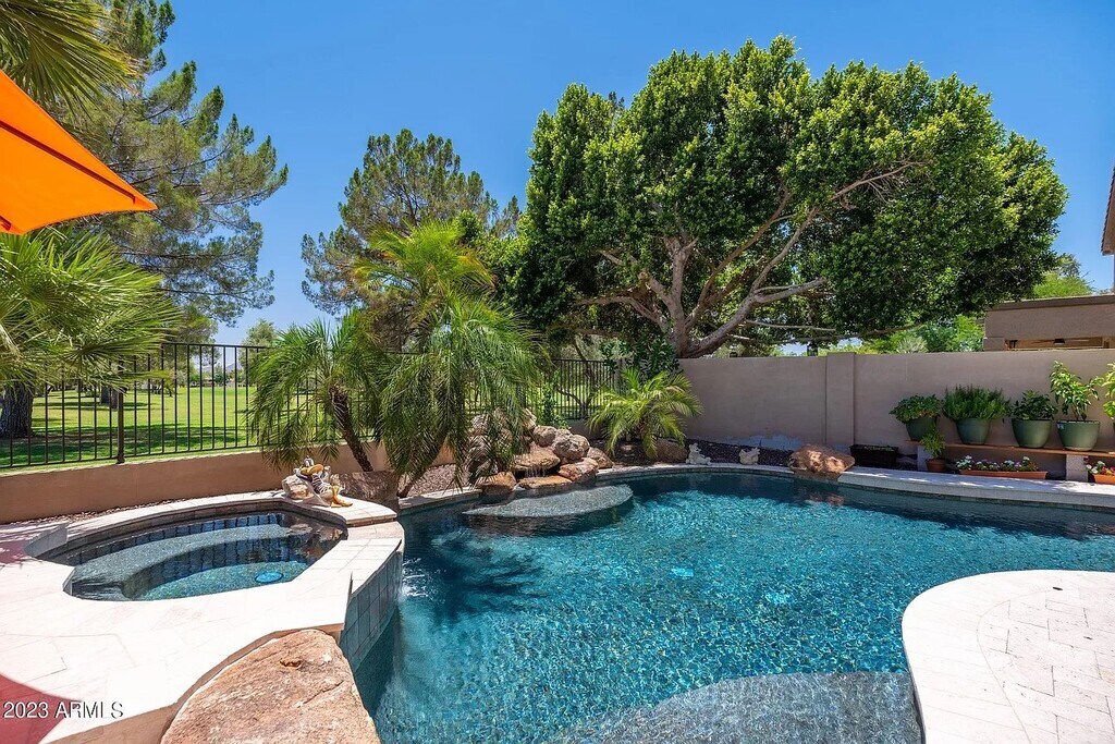 *Luxurious Kierland Home with Resort-Style Backyard* Located in the highly sought-after Kierland community, this stunning home boasts extensive updates from 2021. Enjoy soaring ceilings, expansive windows, and an abundance of natural light throughout. With its prime location, you're just steps away from world-class shopping, fine dining, and the renowned Westin Kierland Resort and Spa, complete with a championship golf course. *Conveniently Located near Kierland Common and Scottsdale Quarter* This property is perfectly situated near Kierland Common and Scottsdale Quarter, offering easy access to top-rated restaurants, shopping, and entertainment. *Unbeatable School District* You'll love the proximity to Sandpiper Elementary School, which is conveniently located right in our backyard! *Resort-Style Backyard Oasis* The serene and private backyard is adorned with beautifully maintained mature landscaping and an inviting pool with spa. Perfect for hosting gatherings, the covered patio features a built-in BBQ and bar top seating. *Luxurious Interior Features* The open-concept kitchen boasts gorgeous quartz countertops, new white shaker cabinetry, stainless steel appliances, and gas cooking. Additional highlights include: - Elegant porcelain flooring - Tastefully updated bathrooms with frameless shower doors and floating tubs - Primary bedroom suite with double door entry and stylish hardwood floors - Amply sized laundry room - 3 car garage with convenient side yard service door *Recent Updates* - Roof replaced in 2022 - AC replaced in 2019 - New interior and exterior paint *Prime Location and Amenities* With its prime location inside the loop, you're minutes away from all major grocery stores and top-rated amenities. Don't miss this opportunity to rent a well-cared-for home on one of Kierland's BEST LOTS! Reach out today to schedule a showing. Lease Terms and Conditions *Lease Duration:* Minimum one-year lease. *Utilities:* Renter pays for all utilities. *Maintenance:* Owner pays for maintenance. *Smoking Policy:* No smoking permitted on property. *Pet Policy:* Maximum 2 pets total allowed (pet deposit applies). *Move-In Requirements:* First month's rent, security deposit, and pet deposit (if applicable) due at signing