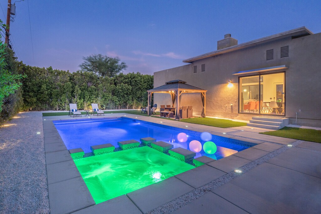 Welcome to Casa Dolce at B-Bar H Ranch, your next getaway destination! This 3 bed/3 bath Mid-Century Modern home comes fully upgraded with a pool, hot tub, outdoor Gazebo, and a Game Room for your perfect desert escape. In addition, step into the private outdoor courtyard and take in the magnificent mountain views. Every bedroom has its own en suite bathroom. The home is located just minutes away from Downtown Palm Springs and its world-class dining and shopping. For those seeking a luxurious desert home, this is an exceptional opportunity. Don't miss out on the chance to vacation in this perfect blend of modern luxury, mid-century charm, and prime location. Amazing vacation rental, 30 day minimum. Regular Rates: $3800/month May-Oct. $4200/month Nov-March. Ask about April rates. $500 move-out cleaning fee. Weekly cleaning available for additional fee as requested. Pool heating fee charged as per usage. Refundable Security deposit required. Drive-by only, do not disturb occupants.