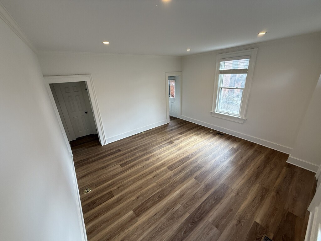 Newly updated historic duplex Chef's kitchen with induction cooktop and double ovens Wood burning fireplace Large basement Second floor laundry Both bedrooms feature en-suite bathrooms Primary includes walk-in closet Spa-inspired bathrooms with double shower heads Balcony and patio with fenced backyard Garage with two parking spots Pets are welcome