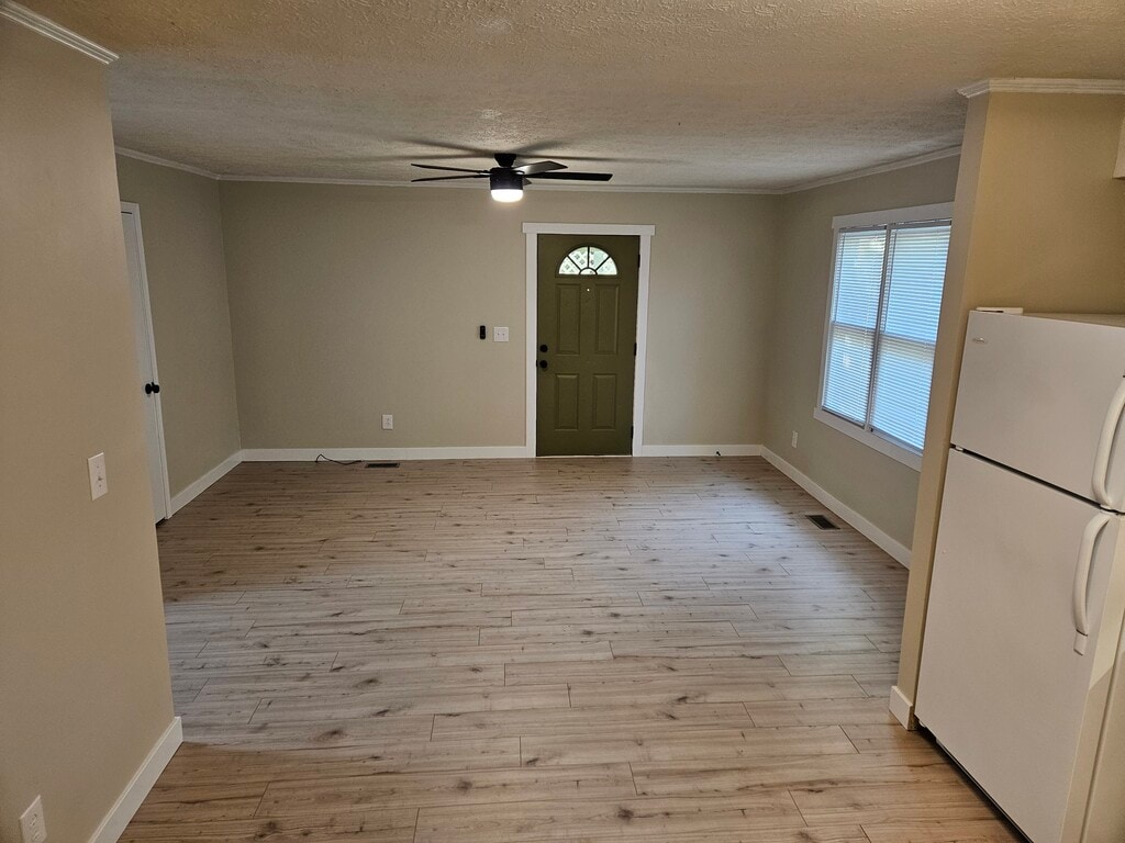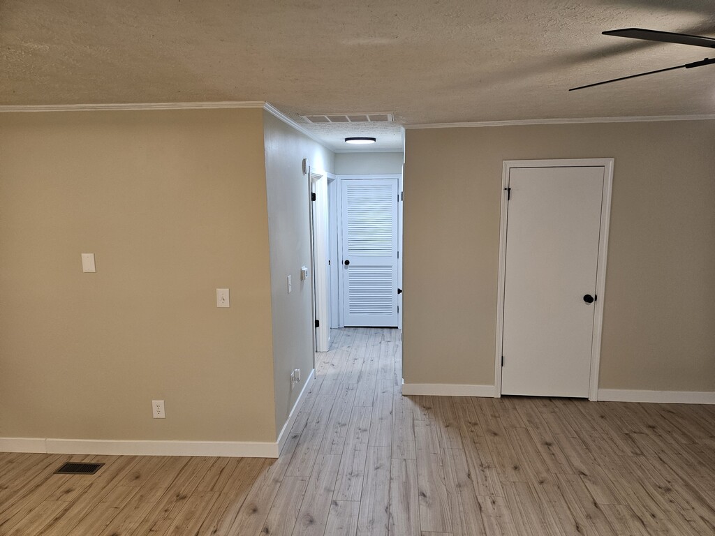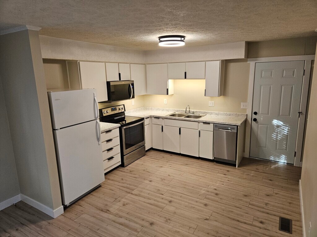 Nice 2 bedroom 1 Bathroom 800 square foot one side of a duplex with an attached 1 car garage with front and side yard space. Newly renovated with central AC and extra insulation blown in Attic for energy efficiency. New floors, trim, paint cabinet doors, dishwasher and microwave. Open concept in living room and kitchen.