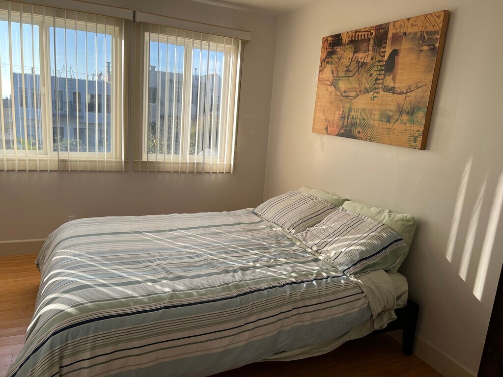 ully furnished, Architect designed contemporary 4 br/3bs/whirlpool tub 2nd floor flat with gourmet kitchen, Queen bed in each bedroom, Walking distance to VA Medical Center/Golden Gate Park/Ocean beach/Lands End. Bus stops to USF and SFSU in 100 ft. Restaurants/Art Museums/Safeway near by. Rent info: Master bedroom suite $1650- Available on 08/01/2026 Bedroom 1 with Bathroom 2 $1550 - available on 05/01/2026 Bed room 2 or bedroom 3 with shared bathroom 1, $1400 each -Available on 06/01/2026. Every Bedroom door has key entry lock and is furnished with Queen/double Bed, Dresser, nightstand, Desk, desk lamp, chair, book shelf and closet. 5G high speed Wireless Internet,, TV, DVD player, Bar-B-Q * Convenient location, 31 & 18 BUS lines at the corner of 40th Avenue and Balboa street. 5 & 5R BUSl lines at 40th Avenue and Fulton Street (2 blocks away), 38, 38R at Geary & 39th Avenue. * Walking distance to VA Medical Center, GG Park, De Young Museum, Academy of Science, Lincoln Park Golf Course, Legion of Honor Art Museum, Ocean Beach, Lands end, Restaurants, Balboa Theater and 10 blocks to Safeway at Ocean * 31Balboa bus takes you to USF. Union Square. 38 Geary bus takes you to Monzion UCSF campus, Kaiser hospital, California and Pacific Medical Center. 5 Fulton bus takes you to USF, St. Mary Hospital, S F Symphony and Opera House, SF Conservatory of Music. 18 bus takes you to SFSU and Stones Town shopping center.