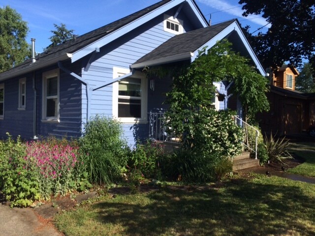 Warm and cozy Arbor Lodge Bungalow! This lovely home is on a wonderful street just a block from Arbor Lodge Park and surrounded by wonderful neighbors. Hardwood floors, wood burning fireplace, newly remodeled kitchen with lovely planter window and bath with clawfoot tub. French doors to spacious deck. Fenced yard with garden area and grape vines. New raised garden beds on the side of the house and full basement w/tons of storage. Detached garage with built-in workbench great for tinkering and creating. Cafes, restaurants, MAX line and more within walking distance!