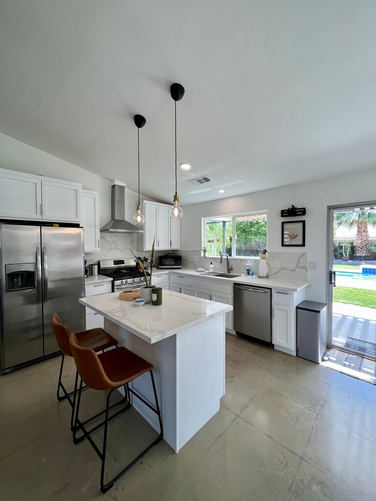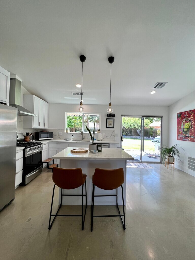 Escape to this beautifully remodeled 2-bedroom, 2-bathroom home in the desirable Panorama Park neighborhood of Cathedral City. The property features breathtaking mountain views, a stunning pool, and a spacious backyard with new desert landscaping. Inside, you'll find an open floor plan with high ceilings, perfect for entertaining or relaxing with family and friends. The home has been fully updated, including a brand-new kitchen with sleek quartz countertops and stainless steel appliances. Additional comforts include polished concrete floors, ceiling fans throughout, and a convenient 2-car garage. It's offered fully furnished and turn-key ready, though an unfurnished option is also available. Conveniently located near the I-10 freeway, shopping plazas, supermarkets, and new casinos, this home provides easy access to everything you need. The owner covers gardener and pool maintenance, while tenants pay for electricity, gas, and water bills. Pets are welcome, but smoking is not allowed. A yearly rental is preferred; contact for details on shorter terms.