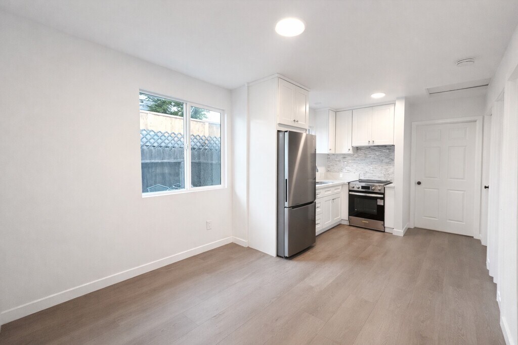Newly constructed ADU featuring 2 bedrooms and 1 bathroom with modern finishes throughout. The unit offers a private entrance and a gated yard, providing added privacy and outdoor enjoyment. Each room is equipped with its own mini-split A/C for personalized comfort. The brand-new kitchen includes new appliances and there is an in-unit stackable laundry area for convenience. Street parking is readily available directly in front of the property with a city permit, ensuring consistent parking access. This space is ideal for comfortable and modern living.