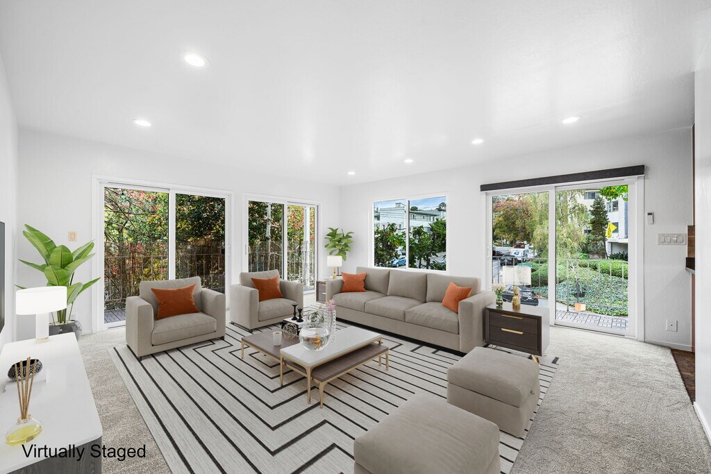 Pet-friendly, updated 2-bedroom, 2-bath corner-unit condo in Piedmont/Oakland with new carpet, fresh paint, and electric blackout shades in both the living room and bedrooms. This bright home offers two private patios ideal for entertaining or relaxing with coffee. The building features elevator access, a shared laundry facility, and both covered and street parking. Conveniently located near shopping and dining, major freeways, the Morcom Rose Garden, and a Salesforce Tower bus stop directly across the street.