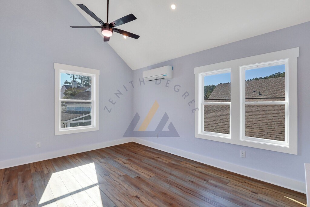 Welcome to luxury living in Shell Hall! This stunning 1 bedroom, 1 bathroom carriage home apartment offers modern elegance with a thoughtful design that maximizes both style and comfort. The open-concept living space features soaring vaulted ceilings that flood the home with natural light, creating an airy and expansive atmosphere. High-end finishes include genuine granite countertops, sleek stainless steel appliances, and premium LVP flooring throughout. The full kitchen and in-unit washer/dryer provide all the conveniences of modern living. Residents of Shell Hall enjoy access to resort-style amenities, including a refreshing community pool, fitness center, tennis courts, and playground. This newly built carriage home combines the privacy with the benefits of community living.