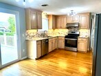 Nicey maintained, 3 bedroom home with a modern forced hot water heating system with cast iron baseboard heat, a separate central air conditioning system, upgraded windows, a renovated kitchen with granite countertops, updated bathrooms, hardwood floors, and a spacious new composite deck accessed through sliding doors from the kitchen. An unfinished walk-out basement offers ample space for storage or future expansion, includes a large dryer. Fully fenced-in back yard. 1 small adult cat or dog, under 15lbs, with approval. Must have good credit and work history, all verifiable. First month, last month and 1 month security.