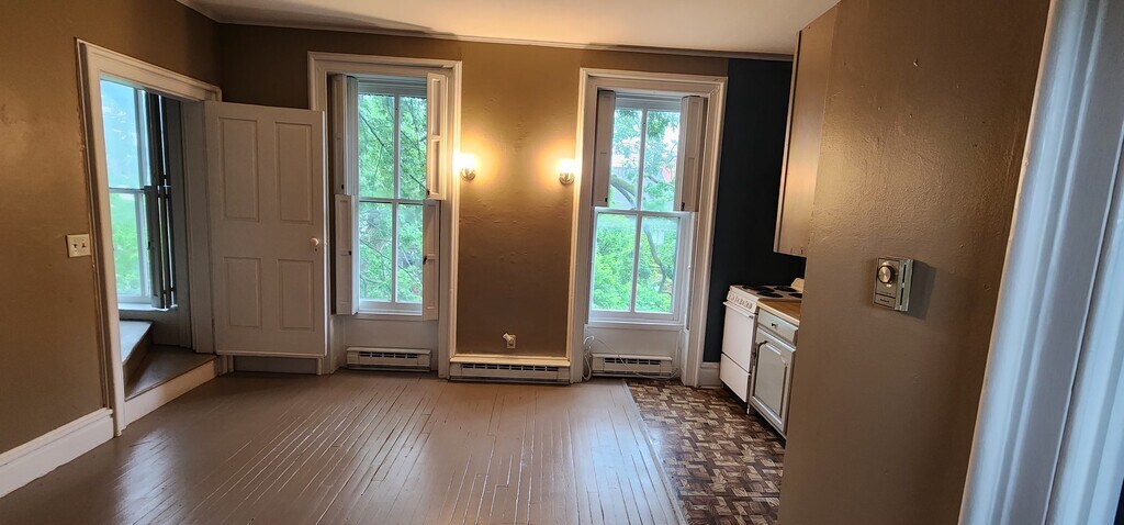 This a multi unit apartment building located in the Stockade. The apartment is close to local transportation, Schenectady Amtrak, Rivers Casino, Union College, Ellis Hospital, and restaurants. This is a one bedroom, full size bathroom, open floor plan (dinning & kitchen), and hardwood floors. Utilities are included, no pets, please.