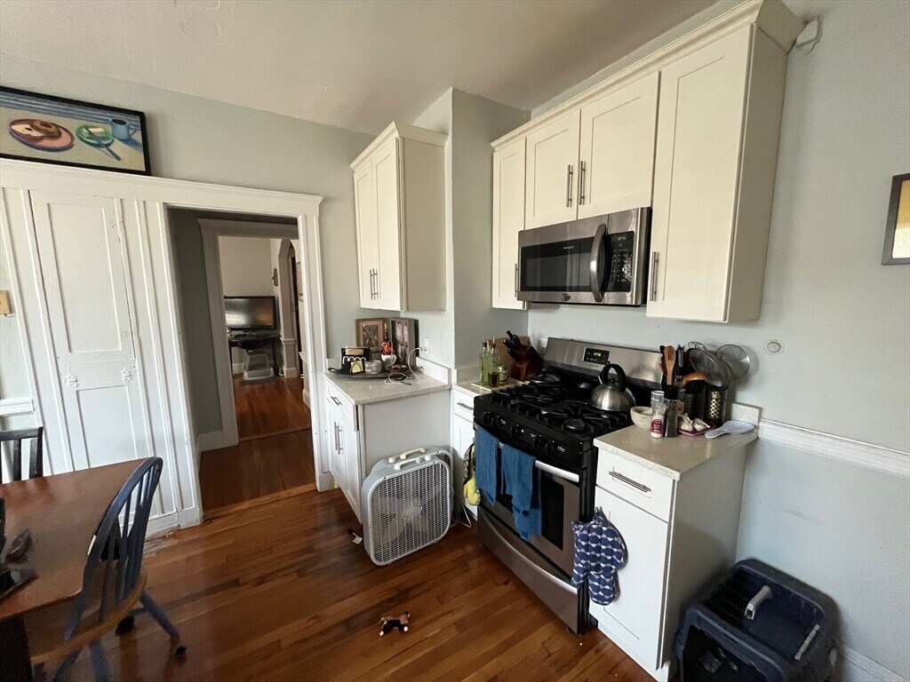 First floor 4 rms-1 or 2 bd with entry foyer in classic 6 unit apt house. Nice side street across from Forest Hills Station near Brassica Cafe and Arboretum. Has good closets, big MODERN EIK HAS pantry MICROWAVE, DISHWASHER, GAS STOVE-, wood floors, porch. Tenant pays all utilities,. Coin Laundry. Join Green Energy Consumer Alliance for extra savings. Has extra space with big pantry off kitchen, and entry foyer.