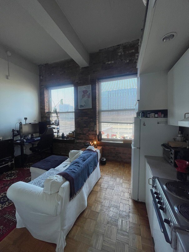Large windows. Lot of natural light. Bright and spacious. Laundry in building.