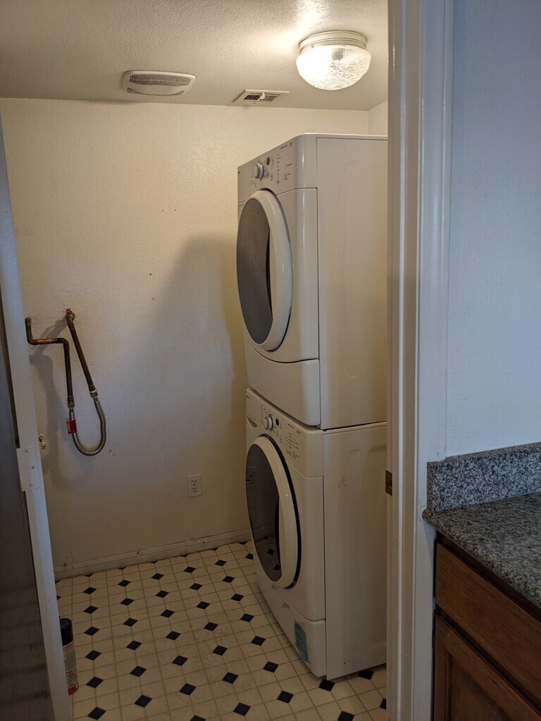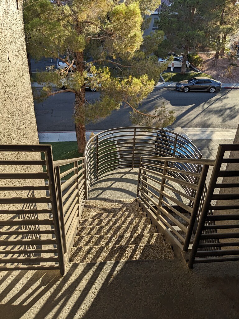This is a 2-story large condo, on the third floor, in the heart of Boulder City, NV. It is close to many convenient places: The community center is one block away, the public library is two blocks away, and Garrett Junior High School is directly across the street. It is a 2-bedroom condo with two sizable storage rooms and 2 full bathrooms. There are two dedicated parking spots, one is covered. There is a swimming pool and jacuzzi for the community. The condo has a large balcony with a panoramic view. The neighborhood is relatively calm and removed from busy streets. The condo is ideal for an adult individual who is looking for a large space to stretch out or for a family of 1 child. Please note that there is no elevator in the building, and one must walk up (though easy) 2.5 flights of stairs (see photos). Please email me if you have further questions.