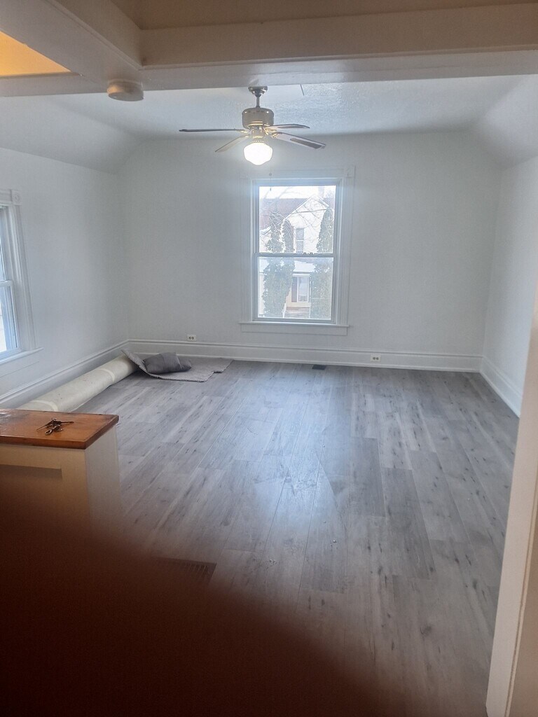 Utilities included in rent. Freshly painted very large 1 bedroom apartment with vaulted ceilings, lots of large windows for natural lighting, large bedroom, full bathroom with tub and shower, large linen closet/pantry, large eat-in kitchen with appliances, on site laundry room, shady outdoor seating area, beautifully maintained yard, extra storage available, quiet neighborhood, close to parks, shopping and bus route.