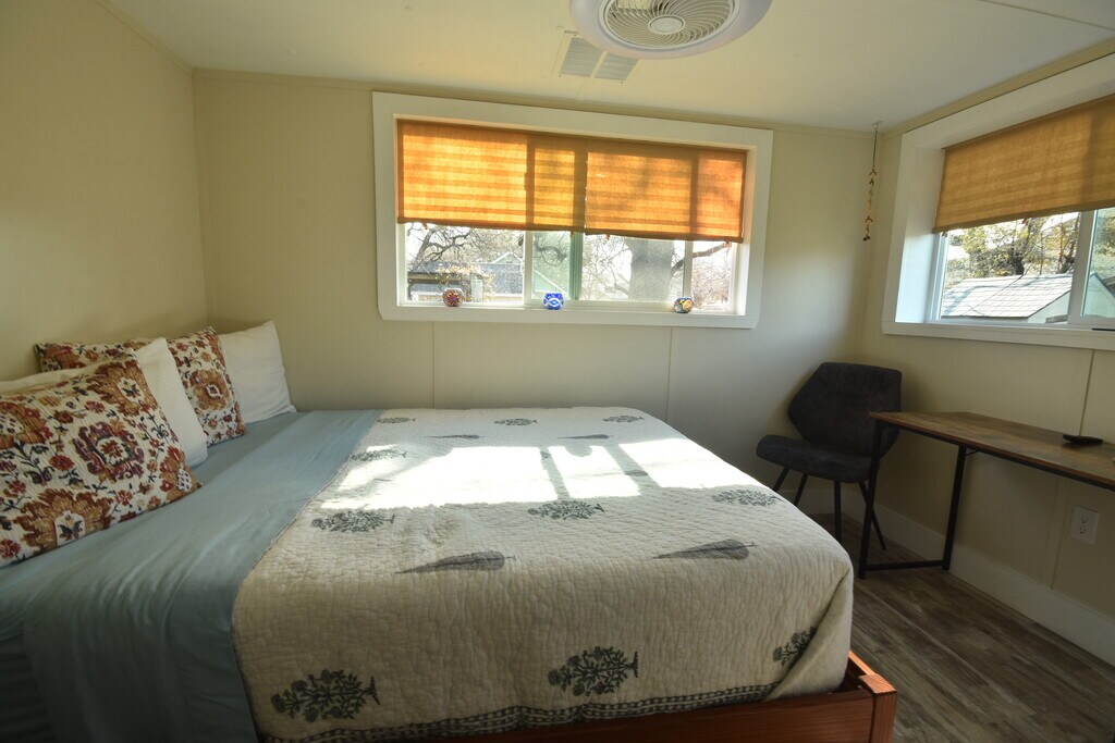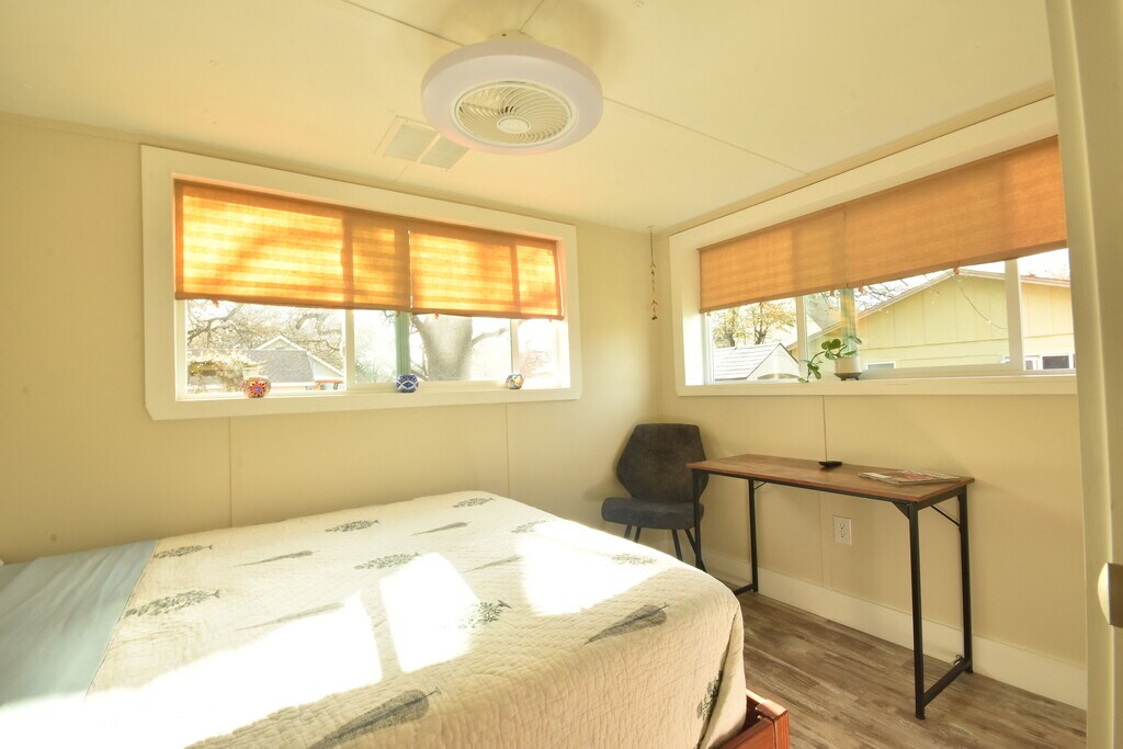 Enjoy this pet-friendly tiny home with a fully fenced yard and a great outdoor hangout space. Located 4 miles from the Austin Convention Center, within 2-miles of hip East Austin Eateries, and walking distance to a beautiful trail system. Free street parking available and free washer/dryer on the property. Utilities not included.