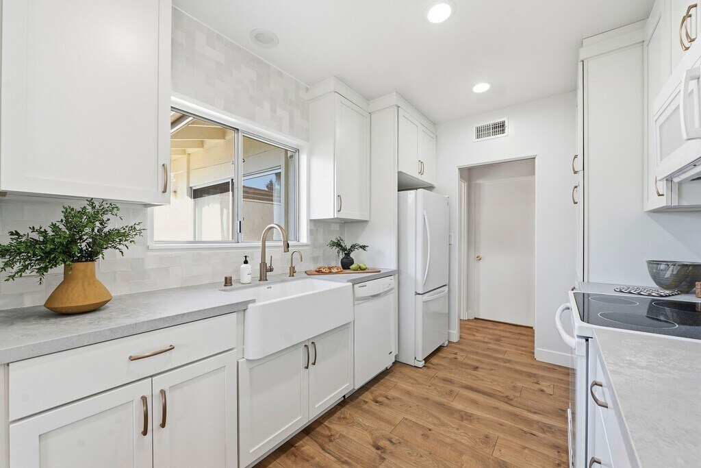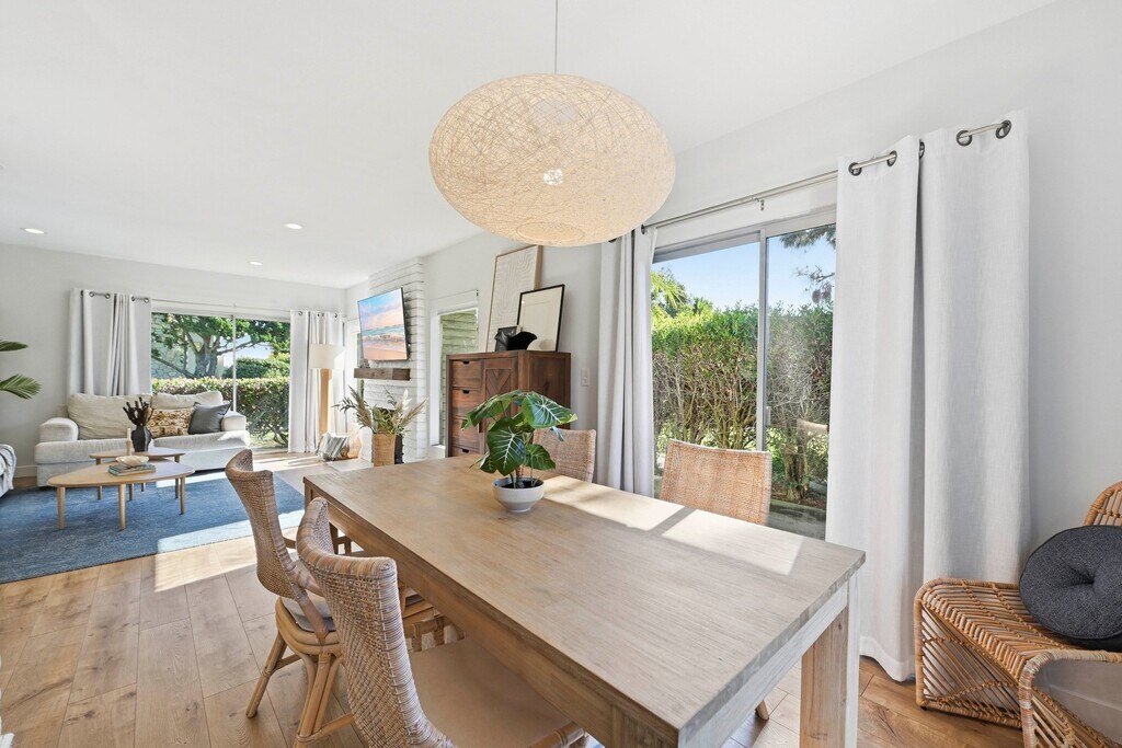 Come visit Estrella Bungalow, a beautifully updated single-level condo in La Costa, Carlsbad! Set in a peaceful, park-like setting with lush green space, this bright 2-bed, 2-bath retreat offers relaxed coastal living. Ideally located between Encinitas and Carlsbad, just 4 miles from the beach and a short walk to the iconic Omni La Costa Resort, it's perfect for couples, small families, or a quiet solo escape. TOP HIGHLIGHTS - Fully furnished monthly rental (3 months max) - Just 4 miles to the beautiful beaches of Carlsbad and Encinitas, plus an easy walk to local coffee shops, restaurants, and boutiques - Sun-filled interiors with wide-frame windows and sliding glass doors that bring the outdoors in - Spa-inspired bathrooms designed for total relaxation - Dedicated office, ideal for working remotely or relaxing with a good book - Thoughtfully curated interiors and a fully stocked kitchen for an effortless, comfortable stay KITCHEN The fully renovated kitchen is equipped with modern appliances, bright white cabinetry, handcrafted Zellige tile, and an oversized farmhouse sink ideal for everything from morning coffee to home-cooked meals. LIVING ROOM Bathed in natural light from wide-framed windows, this open-concept living room brings the outdoors in. Unwind on the spacious, comfortable sofas while enjoying Apple TV and Netflix in a relaxed, airy setting. PRIMARY BEDROOM A serene retreat featuring a plush king bed beneath a sculptural wood ceiling fan. The en-suite bathroom includes a large walk-in shower with an oversized rainfall shower head. Step directly onto a private patio with acacia wood decking and two lounge chairs the perfect place to recharge. GUEST BEDROOM Wake up in a cozy queen bed surrounded by peaceful greenery and soft natural light from the attached zen patio. A separate bathroom offers a deep soaking tub and rainfall showerhead for a spa-like experience. OFFICE Designated office attached to the master bedroom, ideal for working remotely or relaxing with a good book GENERAL: Guests will have full, private access to the entire condo. PARKING: Complimentary parking for up to two vehicles one assigned carport space and one open guest space available. Fully furnished month-to-month property (3 months max) Utilities paid by owner No smoking No pets