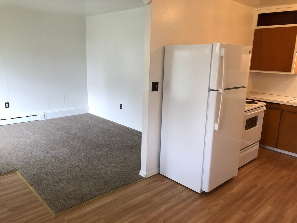 Clean one bedroom apartment close to shopping, schools and clinics. This apartment has newly laminate floors in the kitchen, and dining room. Living room and bedroom have new flooring. Location is quiet and laundry is in the center of the building. Available now starting on a 6-month lease and then month to month. There is a parking lot for your car and W.S.G. is included in the rent. No pets. Call Dave for further information.