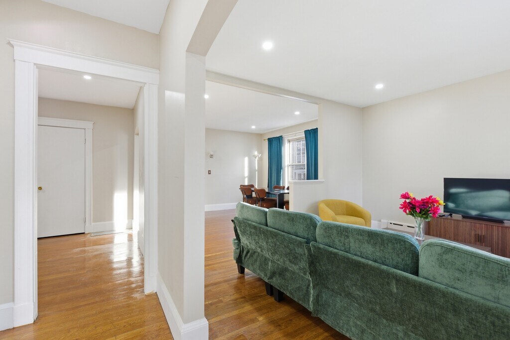 Discover the perfect blend of style and convenience in this newly renovated, fully furnished three-bedroom apartment. Designed for those seeking a seamless move-in experience, the home features a flexible sleeping layout with one King bed, one Queen, and two Twin beds, all set within a bright and modern open-concept space. The unit boasts premium finishes, brand-new Central Heating and Cooling, a private back deck for outdoor relaxation, and the highly coveted benefit of a dedicated off-street parking spot. For added convenience, the apartment includes dedicated washer and dryer hookups ready for your appliances. Ideally located just a 4-minute drive or a short walk to the Commuter Rail at Cleary Square, you can enjoy a quiet residential neighborhood while remaining less than 20 minutes from Downtown Boston.