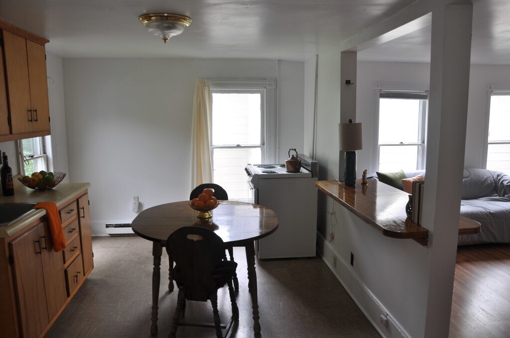 This is a very nice apartment with a breakfast bar that passes through to a bright living room. There is a small study area. It is located on a nice Fall Creek street close to schools and downtown. There is a nice fenced in back yard. There is a grocery store within a short walk. Parking is available. The owners operate these apartments, not a property manager. We are very flexible, available and willing to help tenants.