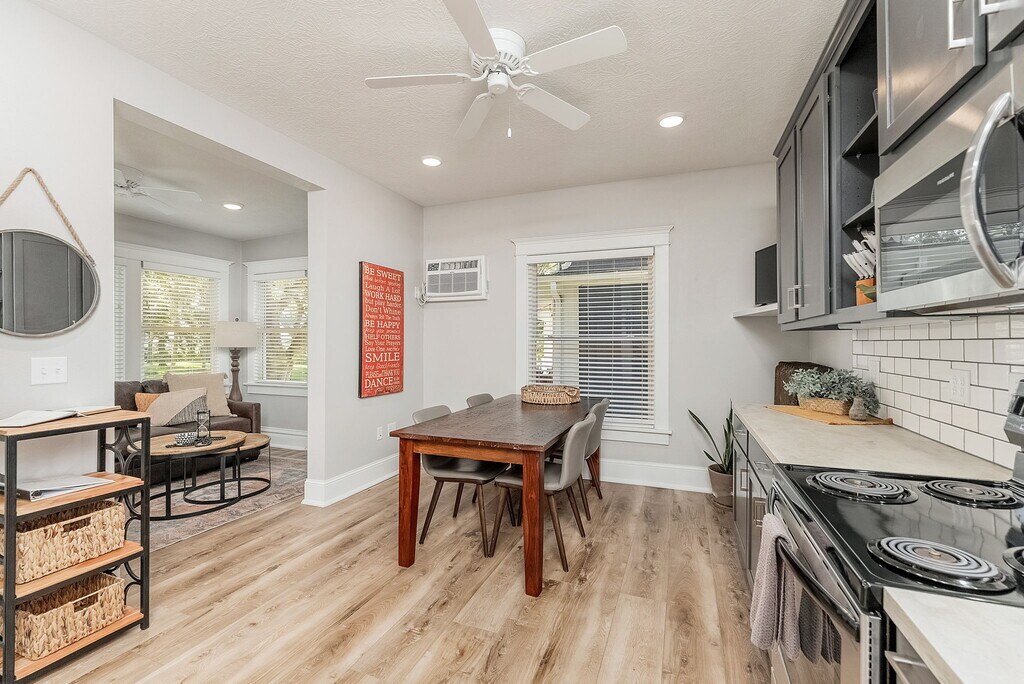 Parkview on Phillips #1 is a bright and sunny newly renovated 2-bedroom, 1 bath unit with off street and behind-the house parking. Full hardwood floors and newer appliances. Currently, the unit is furnished. Each bedroom (2) has a queen Beautyrest mattress. The kitchen is open and perfect for entertaining. There is internet with 4- Roku TVs. There is in-unit laundry (full size washer and dryer/stacked). Utilities (excluding internet) are paid by owner. This unit is within one block from downtown located in a quiet neighborhood & across from Lyon Park. There is on street parking, and a parking pad in the back of the house with access through a back alley Pets are welcome with a per pet deposit & monthly fee