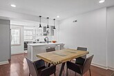 Welcome to 710 Clymer Street. A completely updated and modern home on a quiet block in Bella Vista. Upon entering the living room, you're met with hardwood flooring and recessed lighting, both of which continue throughout the home, and a gas fireplace. The living space pours into the dining room and generously sized kitchen, where little is to be desired. The recently remodeled kitchen features stainless steel appliances, custom cabinetry, a wine fridge, and quartz countertops. The back patio is an ideal space to store your trash, and is easily accessible through St.Albans Street. Heading down to the fully finished basement, you'll find an extra living space(perfect for an office, gym, family room, etc), a laundry room, powder room, and plenty of storage. Up to the second floor, you'll find the first large bedroom, big enough for a king-sized bed. On the other side of the second level is a den, which could also be utilized as a third bedroom, with a deep closet. Rounding off this level is a patio and a completely updated bathroom, featuring marble counters and custom stone work. The third level encompasses the primary suite. Drenched in natural lighting, you'll find two closets in the bedroom(one of which is a deep walk-in) and a marble-clad bathroom, featuring a double vanity and a large walk-in shower. Continuing up the stairs, is perhaps the home's best feature, the roof deck, featuring panoramic views of the city. Ideal for summer nights and dining al fresco. Ideally located in Bella Vista, you're steps away from some of the city's best dining options, such as Saloon, Mawn, Angelos, to name a few. Located in the highly sought-after Meredith School Catchment, this serves as an ideal location for families, young professionals, or anyone looking to enjoy the best of what Philadelphia has to offer!