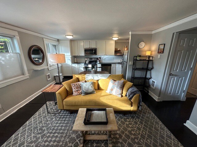Quiet ground-level condo with private fenced backyard blocks away from historic downtown St. Johns. Everything you need is within walking distance- coffee shops, breweries, restaurants and more. Cathedral park and the Willamette river are nearby, with Forest park just across the bridge for hiking. This condo can be rented fully furnished or unfurnished. All utilities are included.