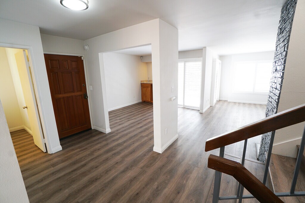 Great end unit with tons of light. Spacious backyard, oversized 2 car garage, separate laundry room, close to shopping, downtown, freeways.