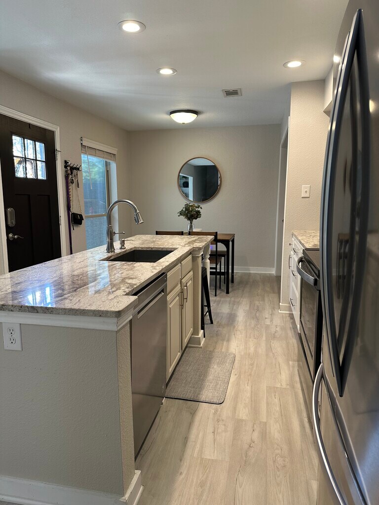 Nicely updated well maintained condo features an updated kitchen with granite counters, stainless appliances and an island. The two bedrooms upstairs each have a private bath, large closets, and plenty of storage. Large outdoor patio is perfect for outdoor dining or just relaxing. The Historic Downtown Grapevine location is exceptional with just a short walk to downtown Grapevine for shopping and dining. Less than 10 minutes to DFW Airport! HOA included with rent price which also includes water. Kitchen Fridge and mini fridge provided. Up to small pets permitted. No smoking. - Minimum 12-month lease required - Security deposit of $2,450 is required prior to move-in. - Renters Insurance required