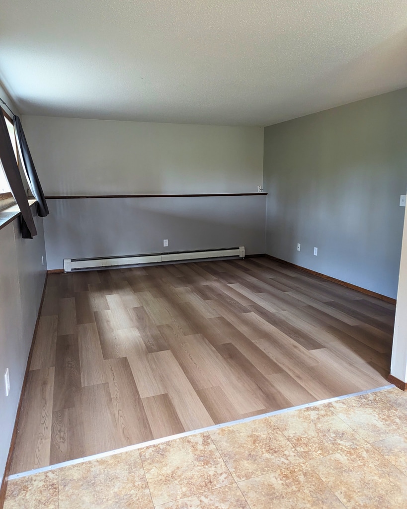 This unit is the lower portion of this duplex! NO backyard neighbors and a fully fenced in yard. You share the yard with the upstairs neighbors but you can make that space your own. Two stall garage that you share so room for 1 vehicle + there is plenty of driveway parking. This property is in a quiet residential neighborhood and has a park right behind it. FREE water and sewer. NO lawn/snow maintenance (although we could talk about reduced rent if you'd maintain lawn and show, I would purchase the mower/snow blower). 2 bedrooms, 1 bathroom, new floors in the bedrooms and living room!
